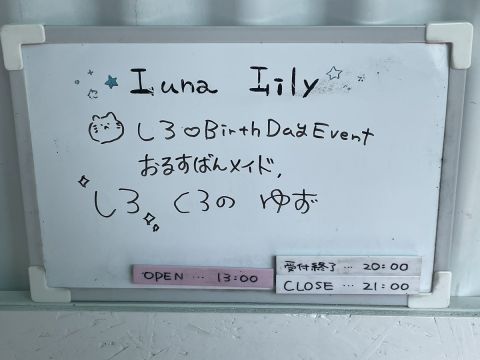 本日8月24日(土)は「納涼イベント」です。 お留守番メイドは、 14時~ くろの、ゆず 17時~ みづき です。 皆様のお帰りをお待ちしております。 #ルナリリー #メイドリフレ #メイド #大阪日本橋 https://t.co/gtoJf5Gb7M