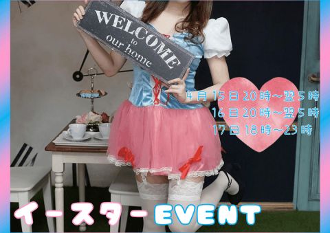 🐰4月15~17日はイースターイベント🐰 可愛い衣装で大人気のイースターEV、今年も開催いたします!! 15日&16日の金土は20~翌5時でのナイトタイムで開催(*´ω`) 限定フードやトレカ&ブロマイドもご用意しております! https://t.co/tC9CuT4kgG