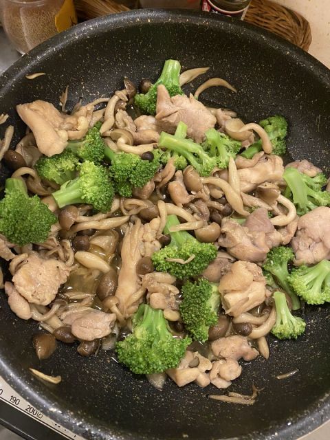 本日はきのこと鶏肉のガーリック炒めです🥰🥰 https://t.co/gXpWmbJXZW