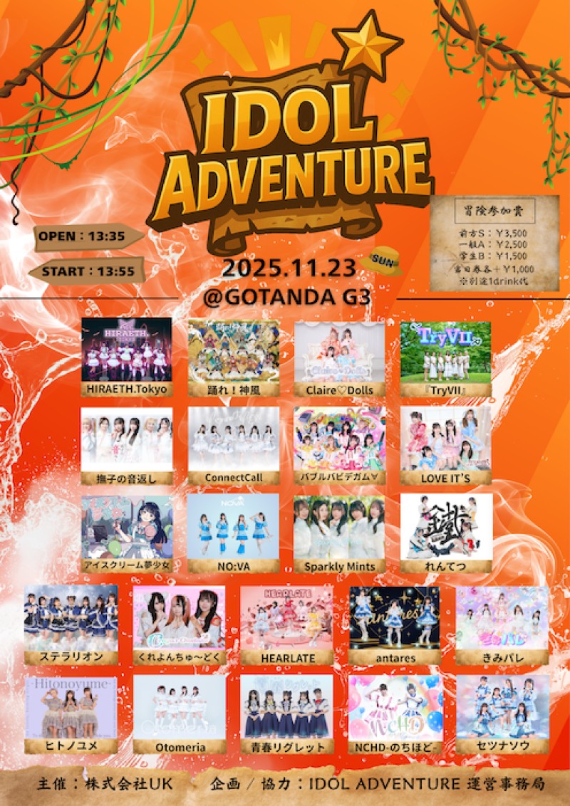 🎫前方S¥3,500/一般A¥2,500/学生B¥1,500/当日各+¥1,000※入場時1D必須
