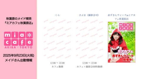 👑本日9月23日(火祝)のミアカフェ秋葉原店