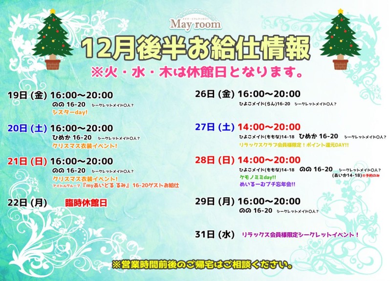 ð2025幎12æ16æ¥ïœ31æ¥ å¶æ¥æ¥ïŒã¡ã€ããçµŠä»æ