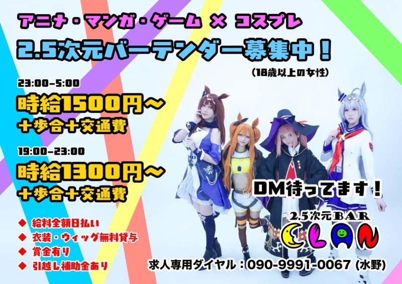 🍸23:00-5:00 → 時給1500円以上+歩合