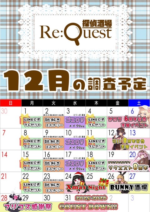 12月も探偵酒場リクエストで、楽しい時間を過ごしましょう🎄⛄️✨